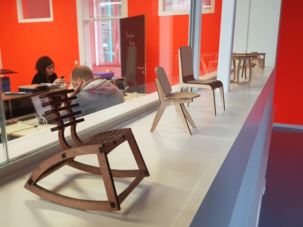 découpeuses lasers, imprimantes 3D, fraiseuses numériques, découpeuses vinyle, électronique de base, … C’est aussi et surtout une communauté ouverte et interdisciplinaire d’étudiants, de chercheurs, d’enseignants, d’artisans, de techniciens et de makers. Cette communauté riche et diversifiée permet le croisement des compétences, l’échange de savoirs et savoir-faire ainsi que l’émergence d’idées créatrices et innovantes. C’est un espace où l’on fabrique des prototypes qui vont du mobilier à des dispositifs électromécaniques en passant par l’électronique et l’informatique, à la croisée de la technologie, de l’art, des sciences et du droit.